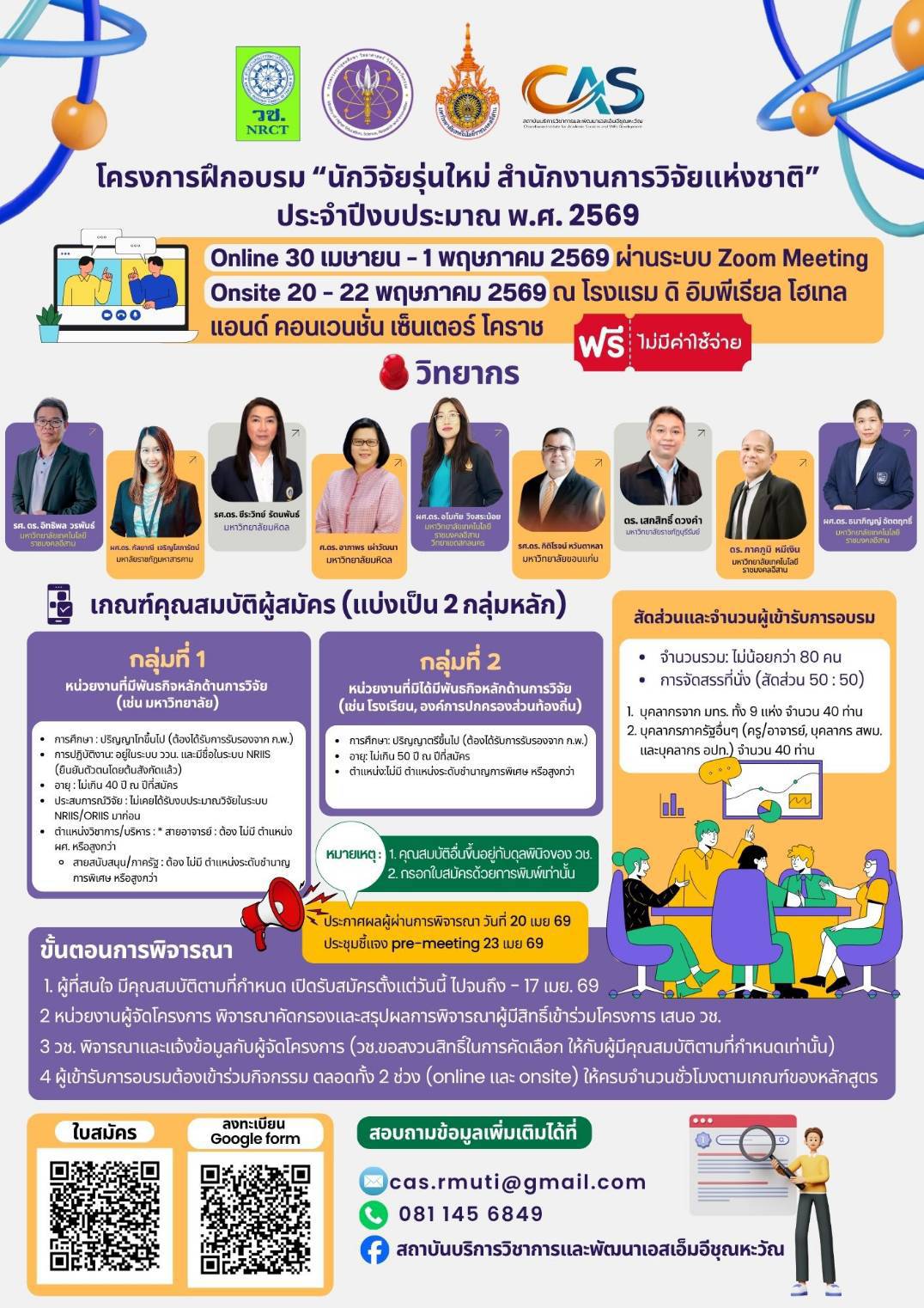 ช่วงที่ 1 (Online): 30 เมษายน – 1 พฤษภาคม 2569 (ผ่าน Zoom Meeting)