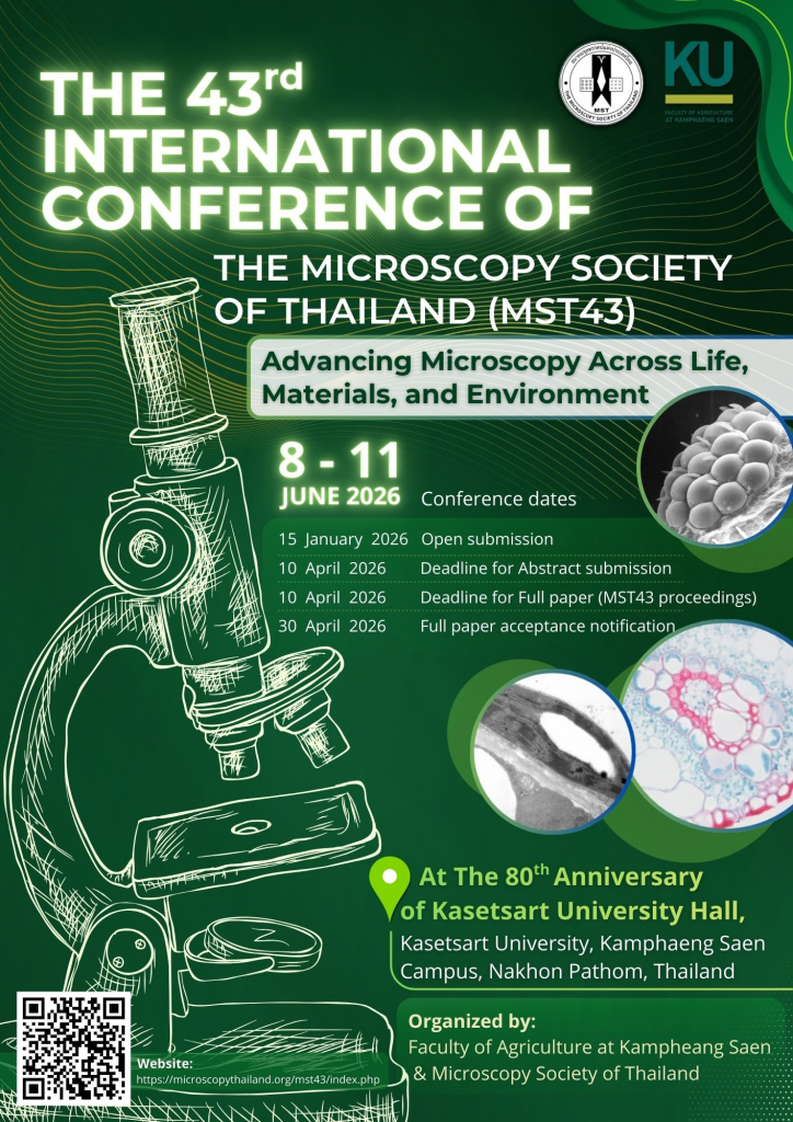 มหาวิทยาลัยเกษตรศาสตร์ โดยคณะเกษตร กำแพงแสน ร่วมกับสมาคมจุลทรรศ์แห่งประเทศไทย เป็นเจ้าภาพจัดงานประชุมวิชาการนานาชาติ “The 43rd International Conference of the Microscopy Society of Thailand”