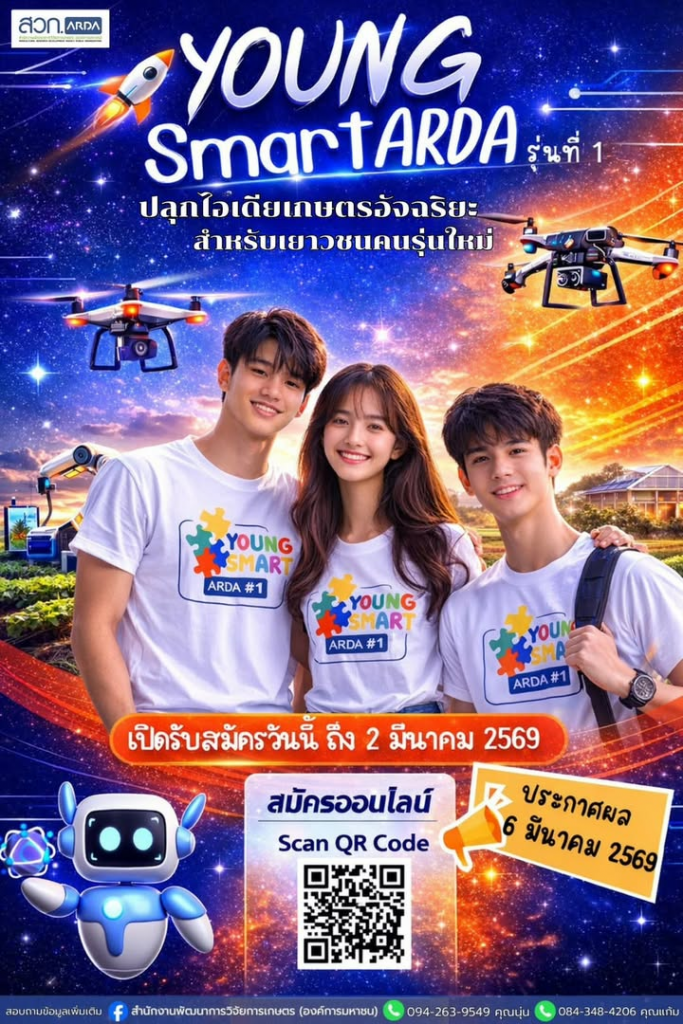 สำนักงานพัฒนาการวิจัยการเกษตร (องค์การมหาชน) เปิดรับสมัคร “Young Smart ARDA รุ่นที่ 1